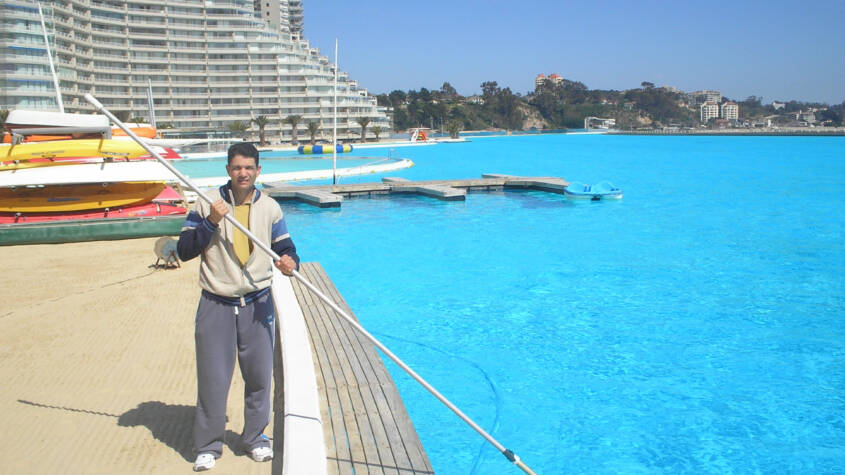 Em 2008 fui visitar a maior piscina do mundo que fica na cidade de Algarrobo – Chile. Foi um dia inteiro andando e conhecendo as particularidades desta gigante piscina, uma experiência sem precedentes.