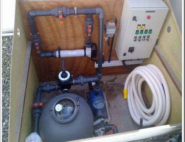 A maioria das piscinas deve ter uma casa de máquinas para abrigar os equipamentos como filtros, motobombas, quadro de energia, controladores de aquecimento, controladores de iluminação e até mesmo os recentes equipamentos de automação.